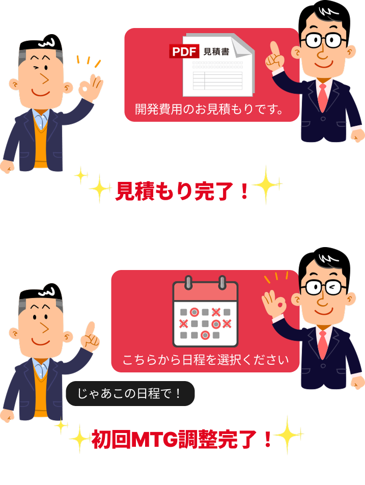 その場で概算金額・期間・体制が揃い、合えば即相談。